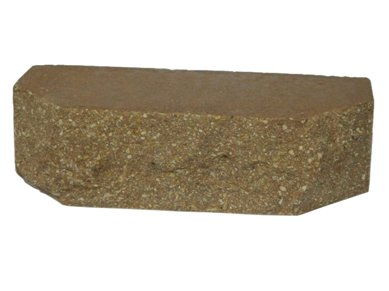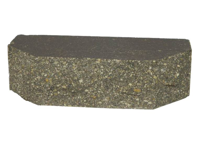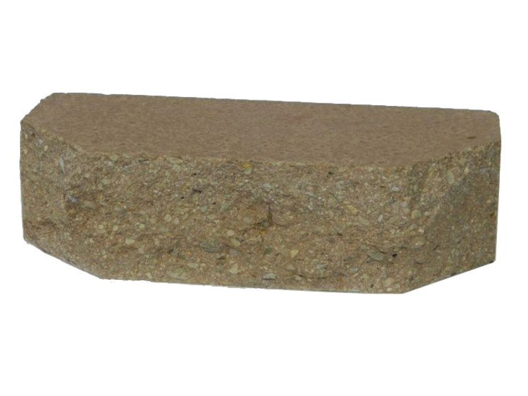 Облицовочный кирпич с рустироваными ложковой стороной и двумя сколотыми углами.